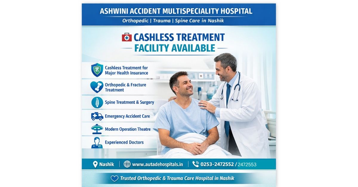 Looking for a Cashless Hospital in Nashik for Health Insurance Treatment? Ashwini Accident Multispeciality Hospital, Nashik provides Cashless Treatment Facility for most major Health Insurance Companies and TPAs, helping patients receive timely treatment without worrying about immediate hospital expenses. Our hospital is one of the trusted Orthopedic & Trauma Care Hospitals in Nashik, offering advanced treatment for accidents, fractures, spine problems, and orthopedic conditions with modern medical technology and experienced doctors. Our Key Medical Services ✅ Cashless Treatment for Major Health Insurance Companies ✅ Orthopedic Surgery & Fracture Treatment in Nashik ✅ Spine Treatment & Spine Fixation Surgery ✅ Emergency Accident & Trauma Care ✅ Advanced Operation Theatre & Modern Facilities ✅ Experienced Orthopedic Doctors & Medical Team If you or your family member needs hospital admission with health insurance, our dedicated team provides complete assistance for cashless insurance approval and documentation. Quality Treatment | Trusted Orthopedic Care | Cashless Insurance Support Ashwini Accident Multispeciality Hospital, Nashik www.autadehospitals.in 0253-2472552 / 0253-2472553