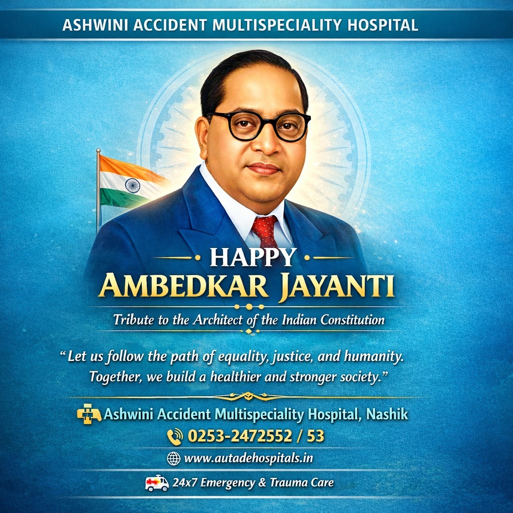 On this auspicious occasion of Dr. Babasaheb Ambedkar Jayanti, we pay heartfelt tribute to the architect of the Indian Constitution and a true champion of equality, justice, and humanity. His vision continues to inspire us to build a healthier, stronger, and more inclusive society. Ashwini Accident Multispeciality Hospital, Nashik wishes everyone a very Happy Ambedkar Jayanti! Let us follow his path of knowledge, compassion, and service