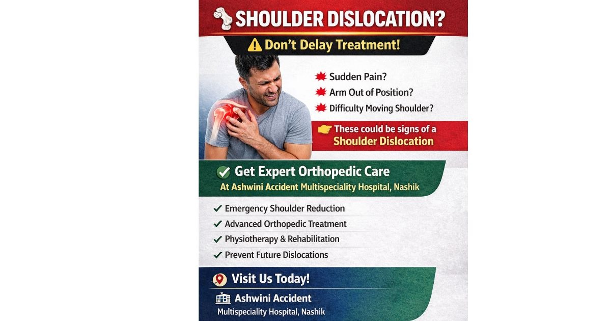 A shoulder dislocation is a painful condition where the upper arm bone comes out of the shoulder socket due to injury, fall, or accident. Immediate medical attention is very important to avoid long-term damage to the joint, muscles, and nerves. At Ashwini Accident Multispeciality Hospital, Nashik, we provide advanced and emergency care for shoulder dislocation with expert orthopedic treatment. Under the guidance of Dr. Girish Autade (Orthopedic & Trauma Specialist), patients receive accurate diagnosis, safe shoulder reduction, and complete rehabilitation support. We focus on quick pain relief, proper joint alignment, and preventing future dislocations through personalized treatment and physiotherapy. Our Services Include: ✔ Emergency Shoulder Reduction ✔ Digital X-ray & Diagnosis ✔ Pain Management ✔ Physiotherapy & Rehabilitation ✔ Long-term Joint Stability Care Common Symptoms: * Severe shoulder pain * Visible deformity * Swelling & bruising * Inability to move the arm Get Expert Care Today Visit Ashwini Accident Multispeciality Hospital, Nashik for reliable and fast shoulder injury treatment. Call: 0253-2472552 / 53 www.autadehospital.in